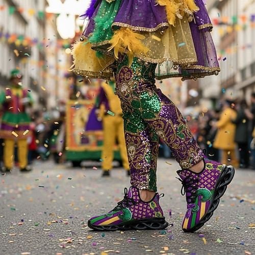 This refined but playful look is perfect for Mardi Gras parades and themed events.