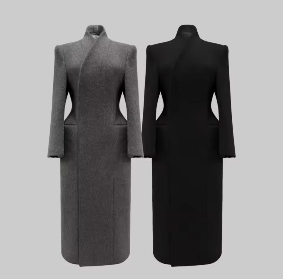 Cross Over Wool Coat Colors Grey Black