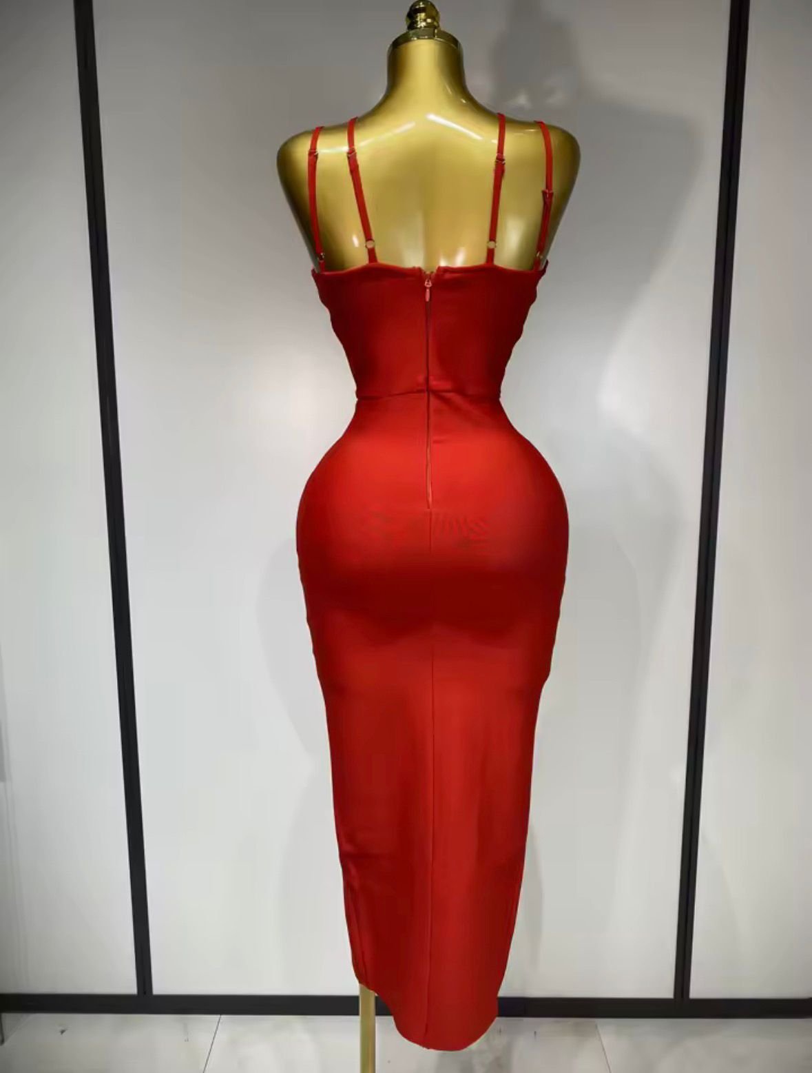 Be the first to review “Sleeveless Hollow Out Split Backless Red Midi Bandage Dress”